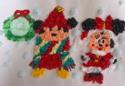ミッキー、ミニーはお花紙でクリスマス衣装とクリスマスリースで賑やかなクリスマスにしました。