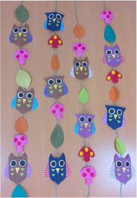 フクロウのつるし飾りも色とりどりで可愛いです。