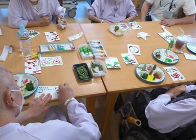 園芸療法では、野菜スタンプで寒中見舞いのハガキを作成しました。